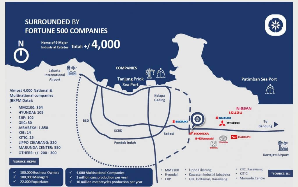- Huge Captive Market: Dikelilingi ratusan ribu karyawan, menjadi satu-satunya hunian di kawasan industri MM2100